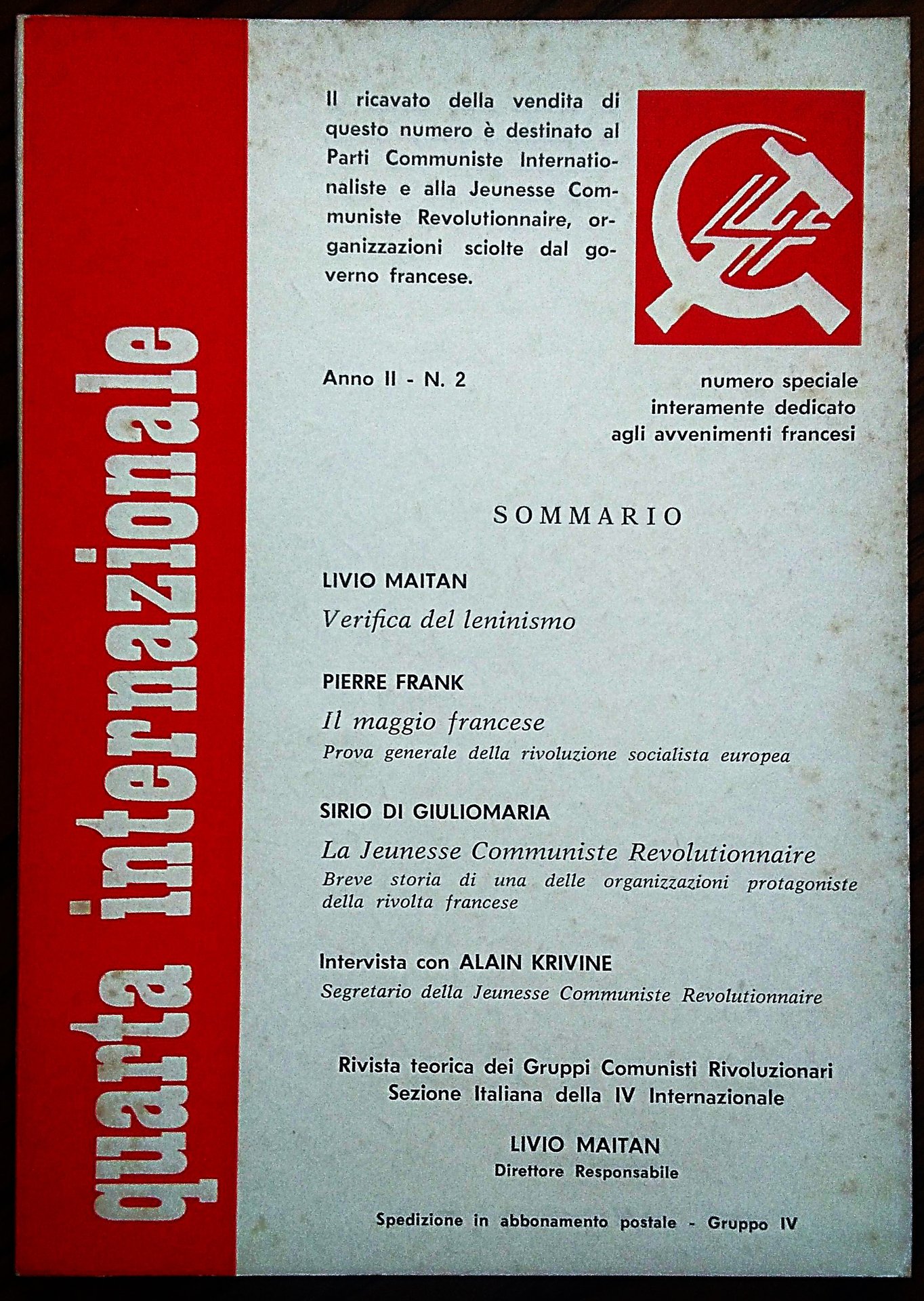 Quarta Internazionale. Rivista teorica dei Gruppi Comunisti Rivoluzionari. Direttore responsabile Livio Maitan. Anno II N. 2.