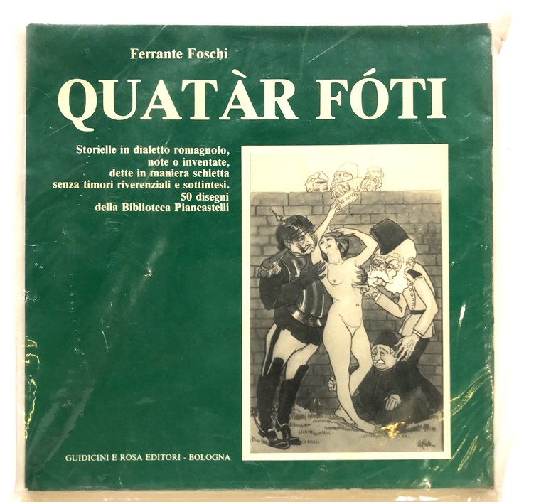QUATAR FOTI: Storielle in dialetto romagnolo, note o inventate, dette in maniera schietta senza timori reverenziali e sottintesi. 50 disegni della Biblioteca Piancastelli.