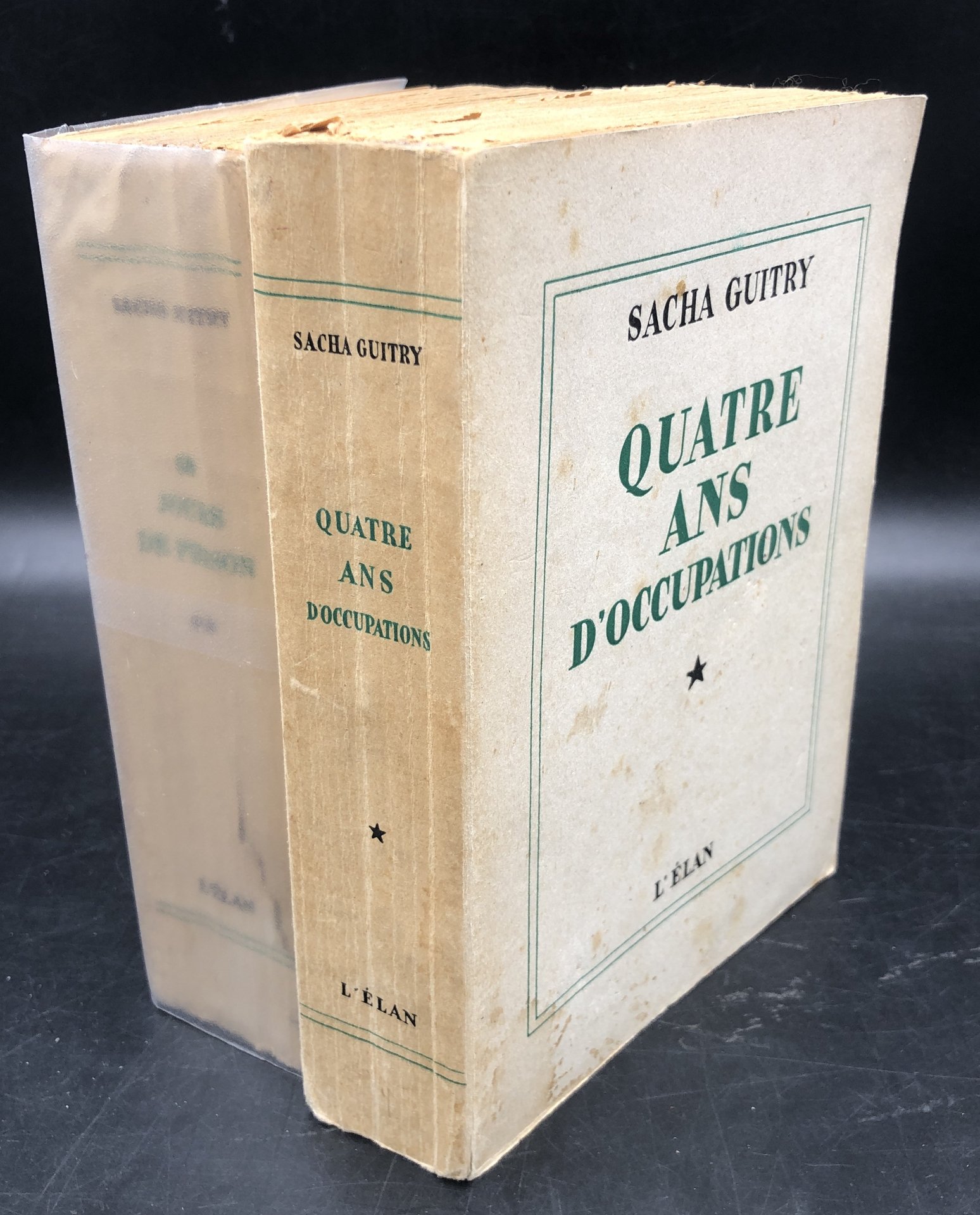 2 spessi volumi in-8° (cm. 19,5x14,2), pp. 555, (5) con un ritratto di scena in antiporta + pp. 664, (9) riproducenti il manoscritto originale, ricco di BOZZETTI e disegni in bianco e nero, steso dall'Autore durante l'ngiusta carcerazione. Cartoncino leggero editoriale, privo della sovraccoperta/fodera, lievi ombre esterne, ma integri e compatti. SACHA GUITRY, attore, regista e sceneggiatore di fama mondiale, Dopo la seconda guerra mondiale passò sessanta giorni in prigione per una sospetta collaborazione con i nazisti, ma fu riabilitato da un processo celebrato successivamente, secondo il quale non solo non collaborò con le autorità tedesche ma avrebbe addirittura aiutato molte persone a sfuggire alle persecuzioni. Nel primo volume e non senza frecciate da par suo, racconta l'onta dell'occupazione nazista e di Vichy 1942-45 e nel secondo l'ignominia del suo imprigionamento e l'amarezza per il vilipendio subito da alcuni francesi. Il suo funerale fu seguito da 12.000 persone. Non comune così completo e grandissima lettura. I due volumoni
