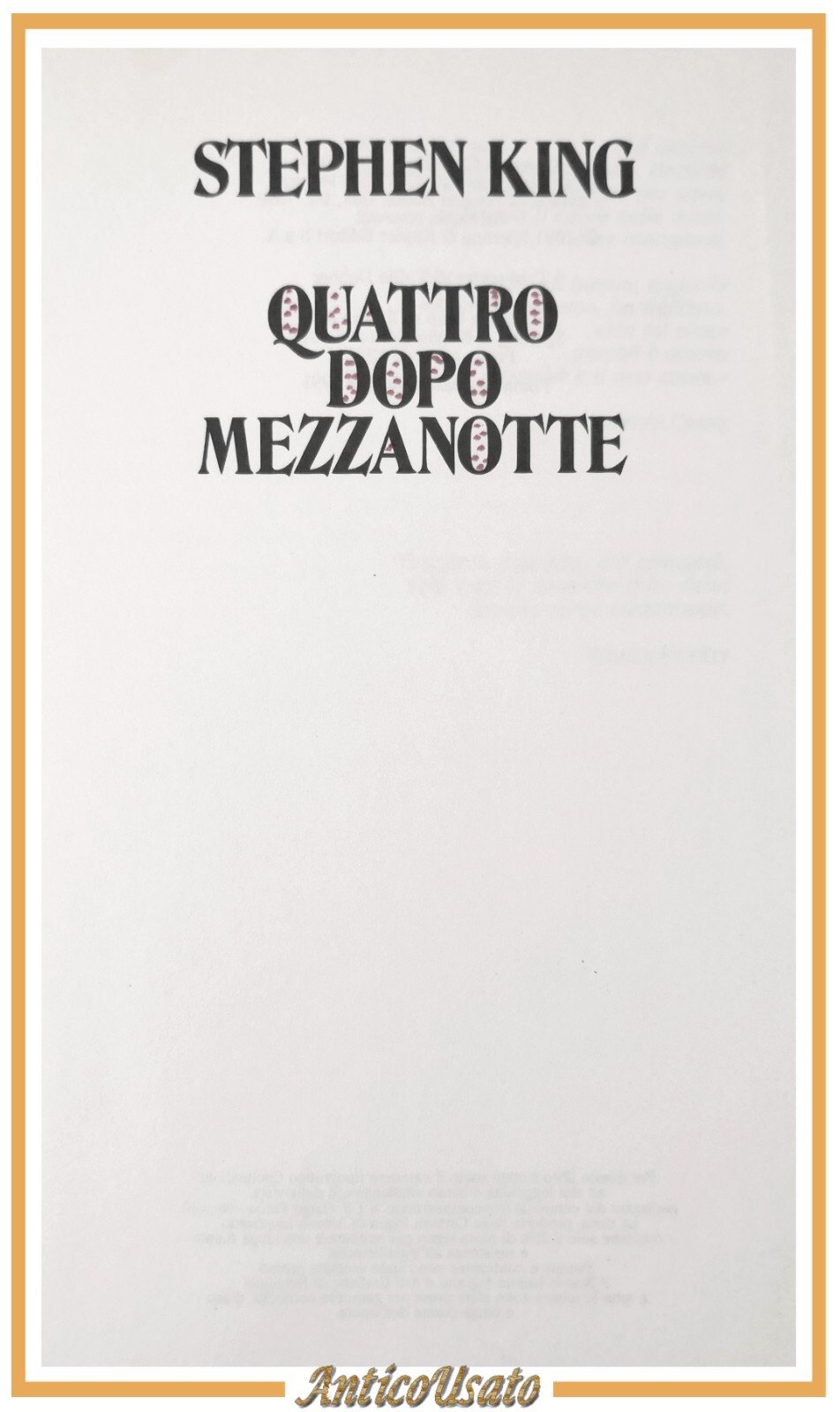 QUATTRO DOPO MEZZANOTTE di Stephen King 1991 Sperling and Kupfer Libro Romanzo