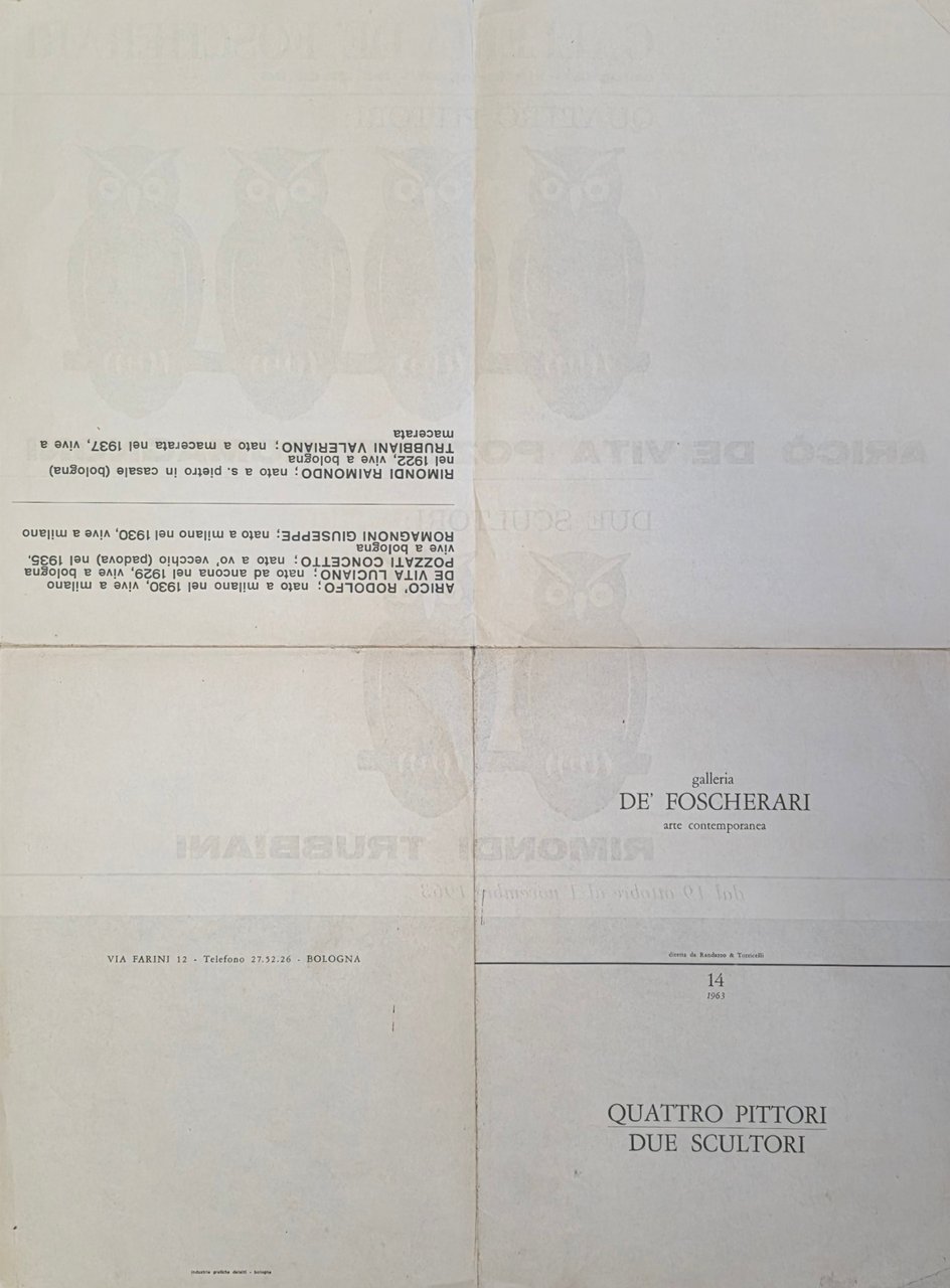 QUATTRO PITTORI / DUE SCULTORI: ARRICÒ, DE VITO, POZZATI, ROMAGNONI; ROMONDI, TRUBBIANI