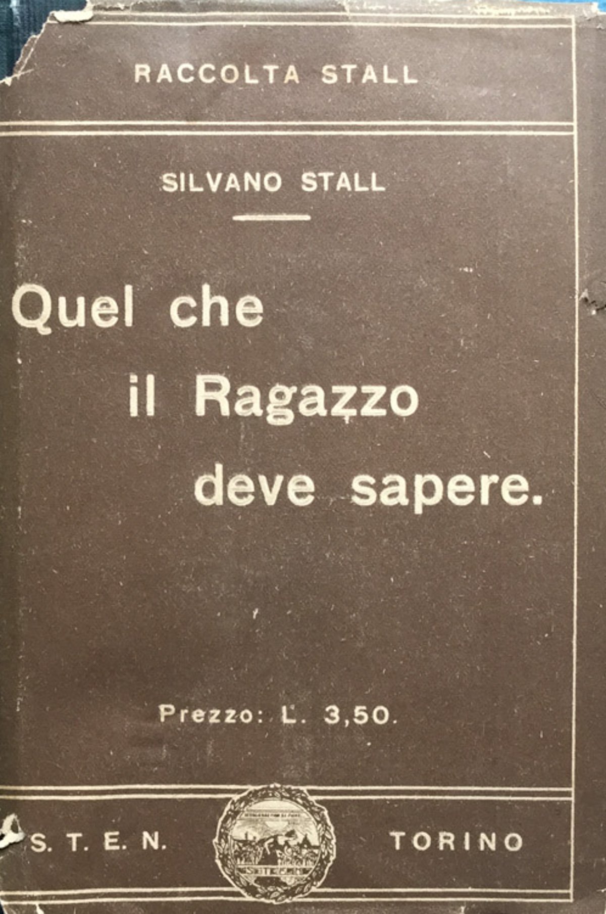 Torino, STEN, 1913, in 8vo. Trad. dall'inglese di Ernesto Codignola. Introduzione di Pio Foà. Cartonato tela con sovrimpressioni oro e sovracop.- 238 pp., 18cm. Ritratto dell'autore nell'antiporta protetto da velina. Grande carta depliant allegata. Collana: Raccolta Stall di opere destinate all'educazione sessuale. Condizioni: buone, mediocre la sovraccoperta. 16 Buono (Good) Buono