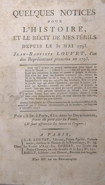 Quelques notices pour l'histoire, et le récit de mes périls depuis le 31 Mai 1793.