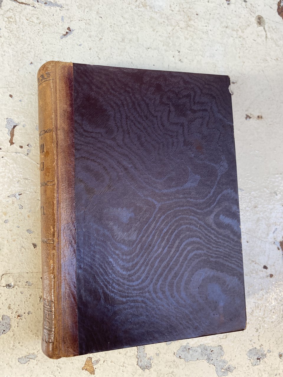 Vol. unico, in -16, pp. 326, leg. mezzapelle successiva, tagli spruzz. di blu, titoli oro sbiaditi e filetti al dorso, numerosi segni di uso antico a penna (anche rifilati insieme alle pagine nel margine superiore), alcune pagine molto brunite altre candide, marchio tipografico al frontespizio, alcune iniziali xilografiche istoriate.