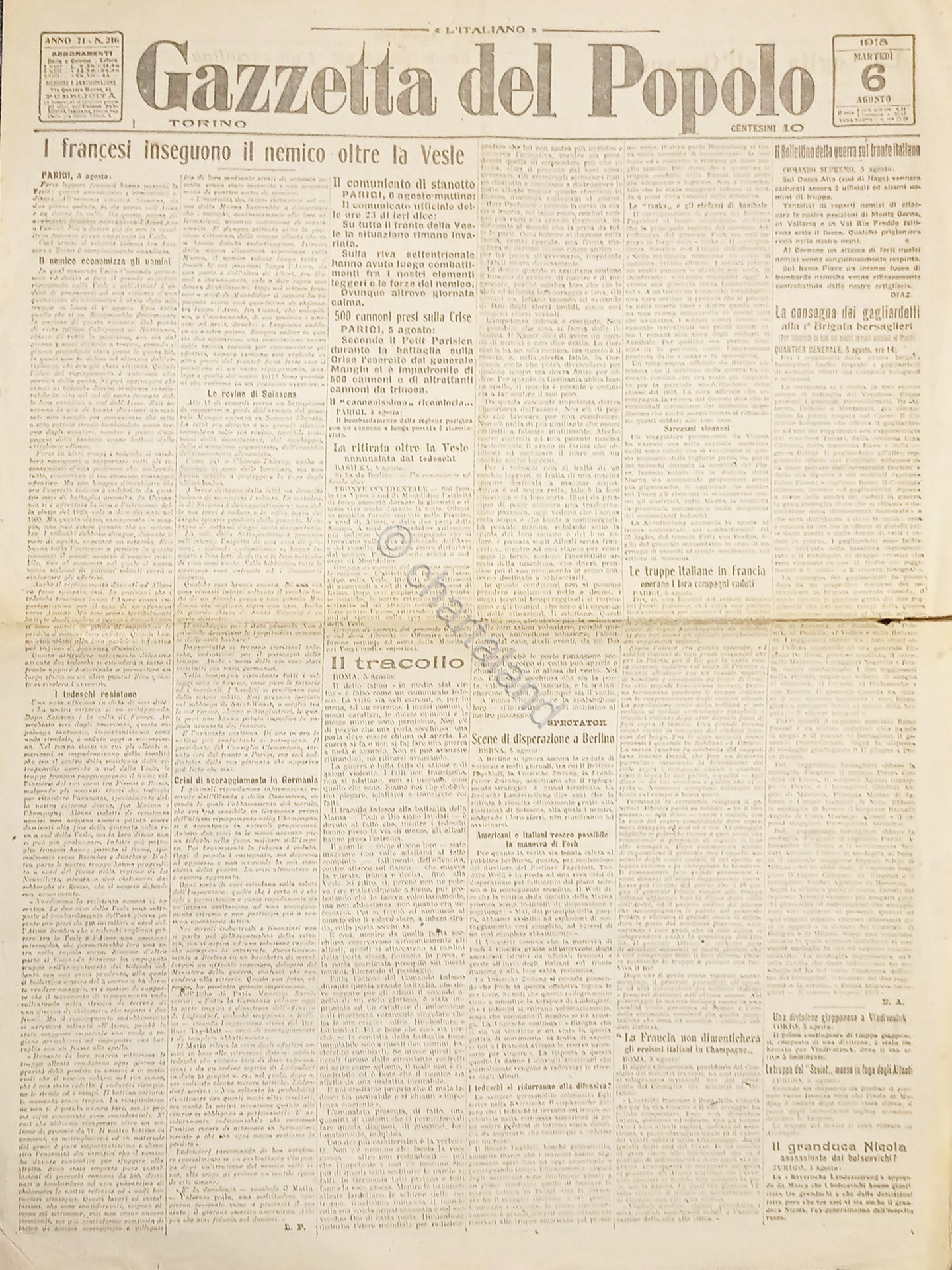 Quotidiano - Gazzetta del Popolo N. 216 - 1918 I Francesi oltre la Vesle