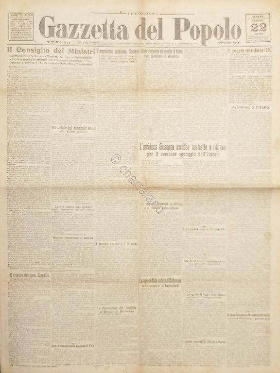 Quotidiano - Gazzetta del Popolo N. 230 - 1919 Il Consiglio dei Ministri