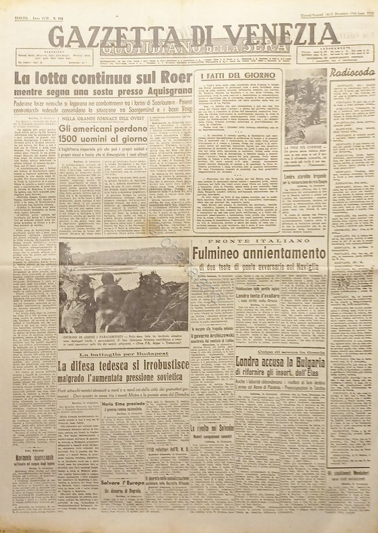 Quotidiano - Gazzetta di Venezia N. 298 - 1944 La lotta continua sul Roer