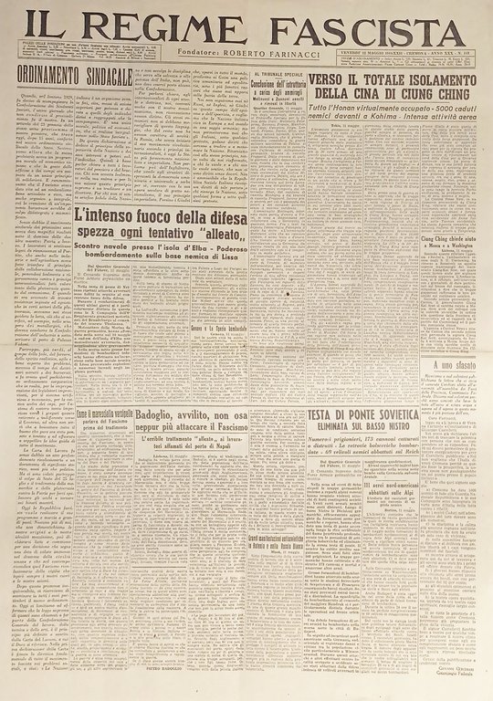 Quotidiano - Il Regime Fascista n. 113 - 1944 Verso l'isolamento della Cina