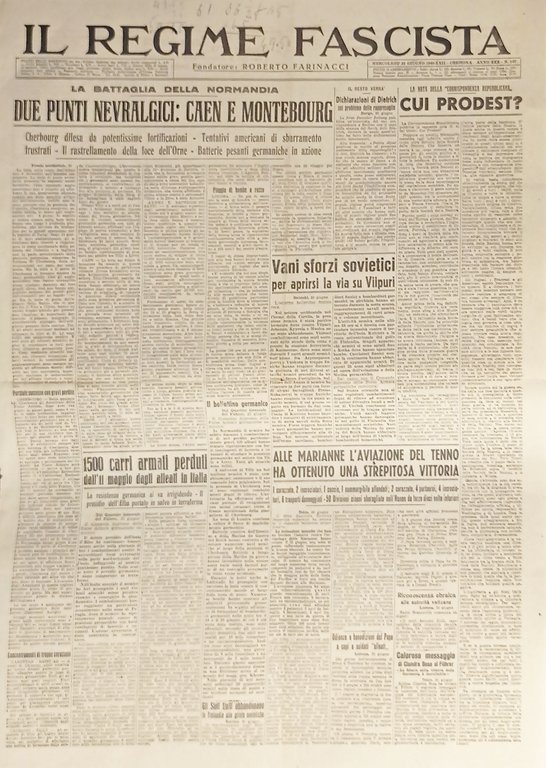 Quotidiano - Il Regime Fascista n. 147 - 1944 Punti nevralgici Caen e Montebourg