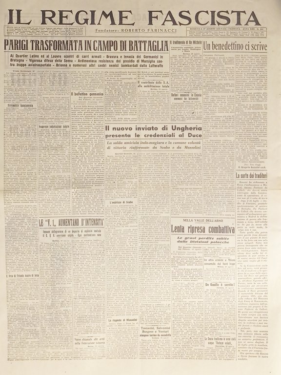 Quotidiano - Il Regime Fascista n. 205 - 1944 Parigi trasformata in campo