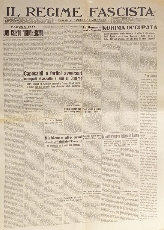 Quotidiano - Il Regime Fascista n. 85 - 1944 Kohima occupata
