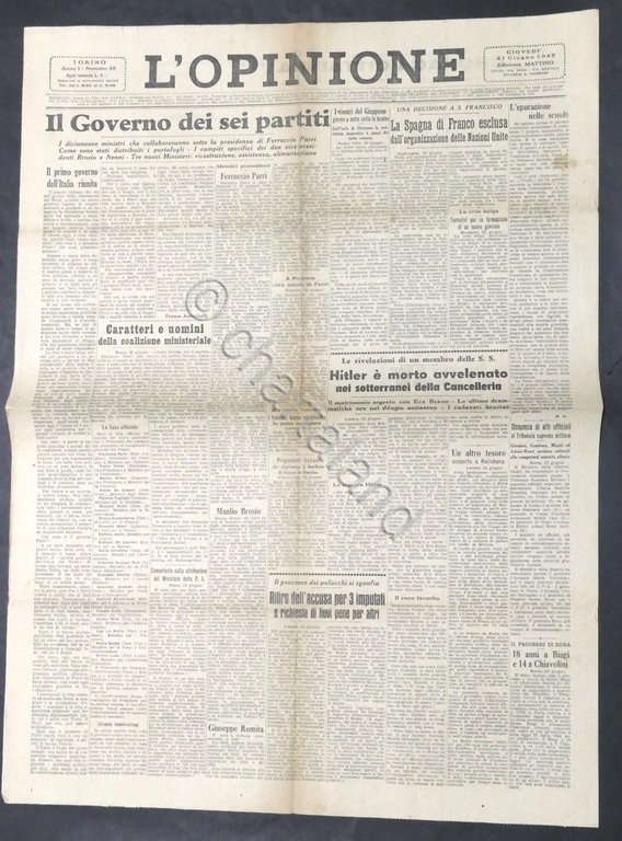 Quotidiano di Torino - L'Opinione - N. 49 - 1945 - Il Governo dei sei partiti