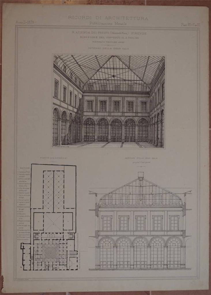 R. AZIENDA DEI PRESTI (MONTE DI PIETA) - FIRENZE RIDUZIONE DEL CONVENTO DI S. PAOLINO FORTUNATO CINTOLESI ARCH. INTERNO DELLA GRAN SALA