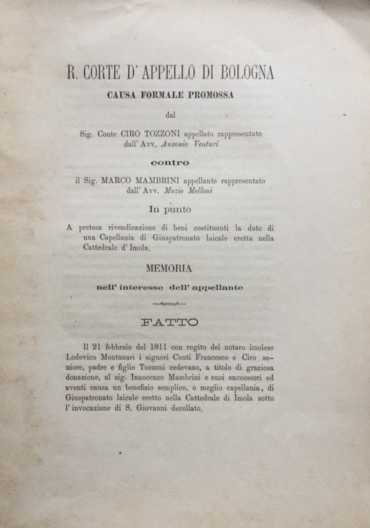 R. Corte d'Appello di Bologna. Causa Ciro Tozzoni-Marco Mambrini