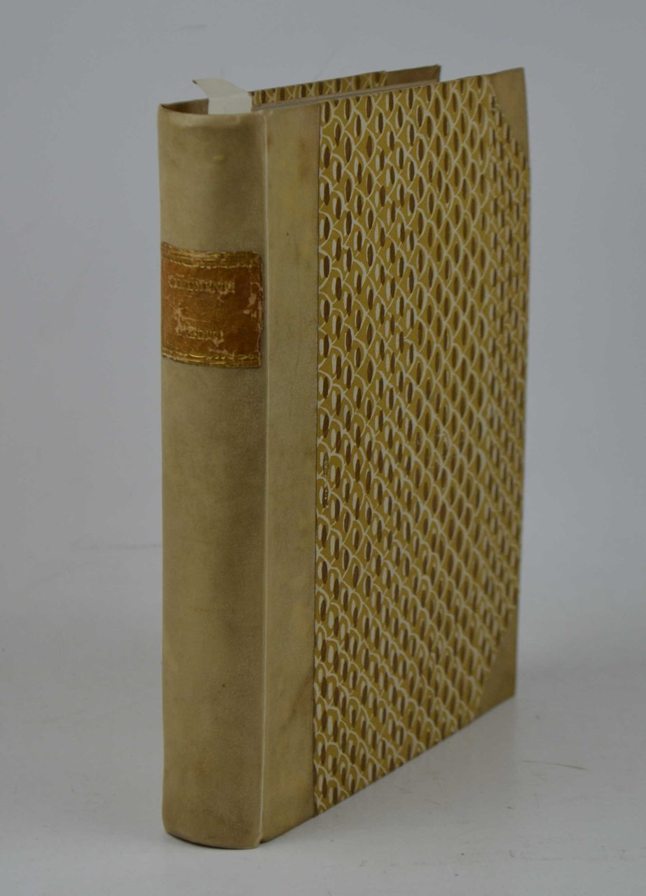 Due volumi legati in uno di cm. 23,5, pp. xv (1) 252; 275 (1). Legatura novecentesca di foggia antica in mezza pergamena con punte, dorso liscio con fregi e titoli in oro. Esemplare genuino e ben conservato. Seconda edizione, migliorata e corretta rispetto all'originale apparso un anno prima.