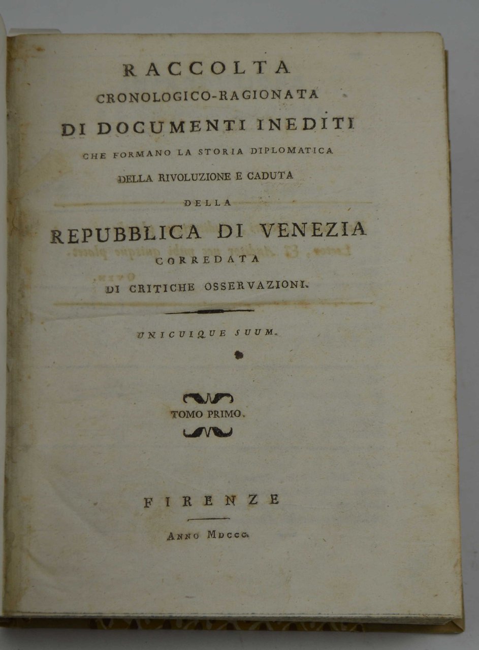 Raccolta cronologico-ragionata di documenti inediti che formano la storia diplomatica della Rivoluzione e caduta della Repubblica di Venezia corredata di critiche osservazioni.