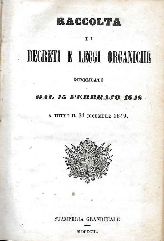 Raccolta di Decreti e Leggi Organiche pubblicate dal 15 Febbraio 1848 a tutto il 31 Dicembre 1849.