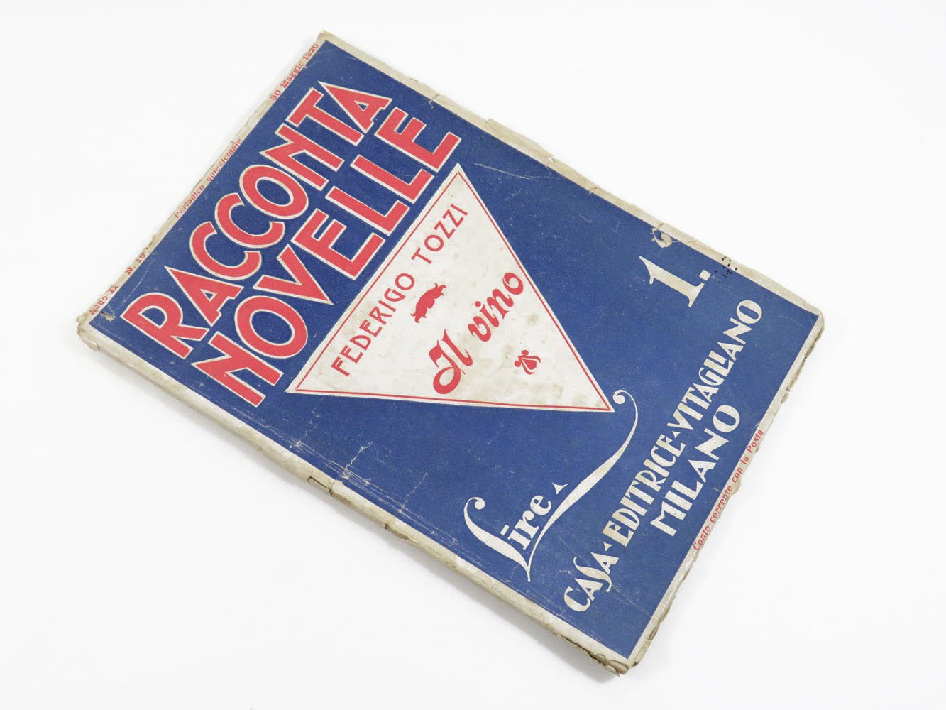 LIBROEdizione originale.Sfrangiature marginali alla copertina, per il resto fragile reperto ben conservato.Rrarissimo fascicolo monografico del «Raccontanovelle» dedicato a Federigo Tozzi, scomparso improvvisamente il 21 marzo 1920 ammalato di polmonite. Pubblica, in edizione originale: una brillante e lunga autobiografia, datata in calce «Roma, marzo 1920»; le novelle «Il vino», «La gallina disfattista», «Elia e Vannina», «La mia amicizia»: nucleo dell’eponima sezione «Il vino» nella raccolta di racconti «L’amore», apparsa un mese dopo, nel giugno 1920, per i tipi di Vitagliano, e molto ristmpata.