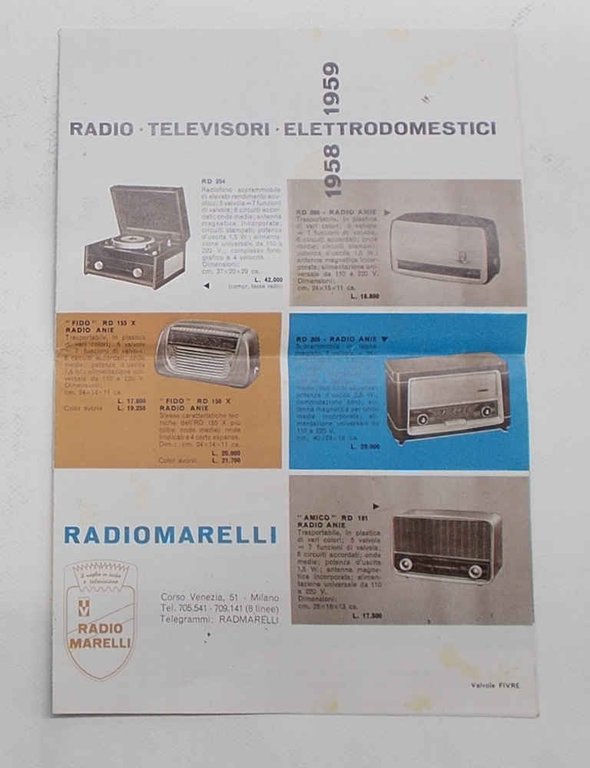 Radiomarelli. Radio - Televisori - Elettrodomestici. 1958 - 1959.