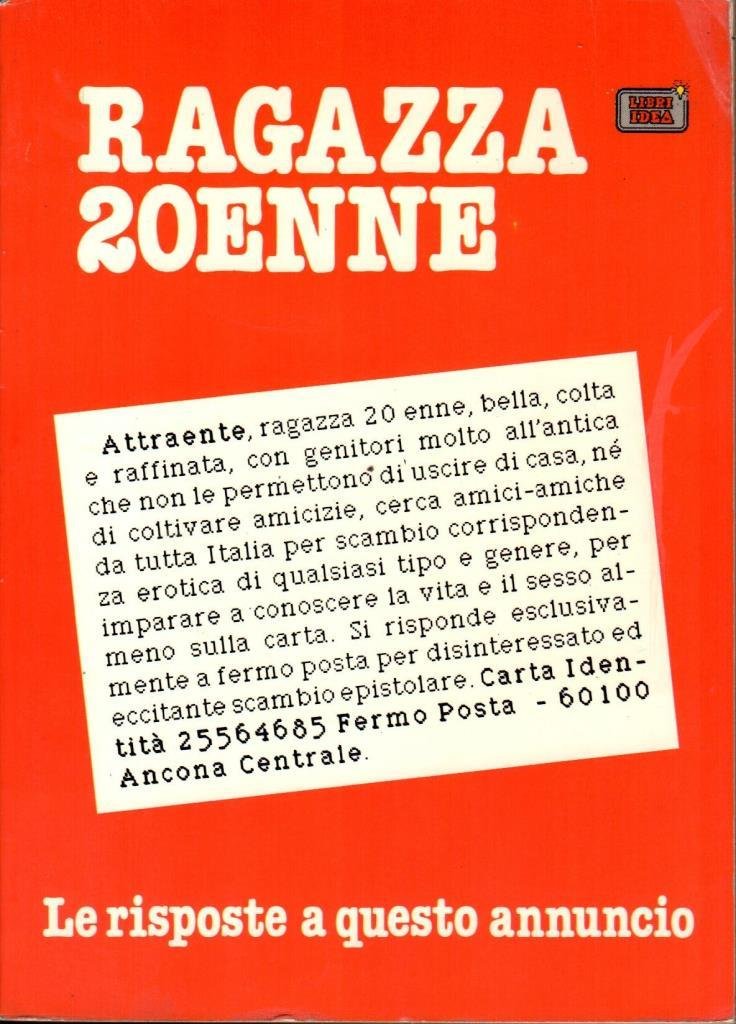 "Ragazza 20enne. Le risposte a questo annuncio", edizione marzo 1991, pp. 206, formato 15 x2 1.