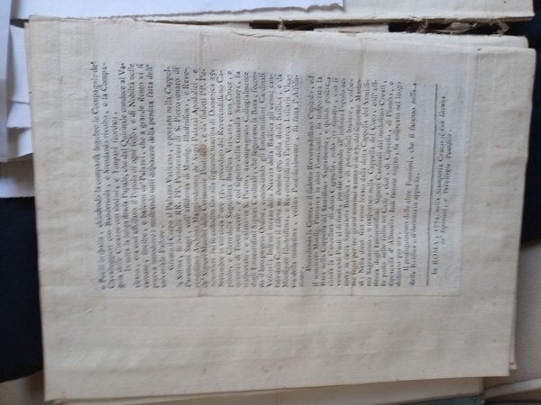 In-8°. pp. XI, (1) montate su fogli in-4°, senza legatura, un capolettera e un finalino incisi su legno. roma quirinale vaticano clemente XIV funerale feste funeral morte death apparati effimeri ephemeral
