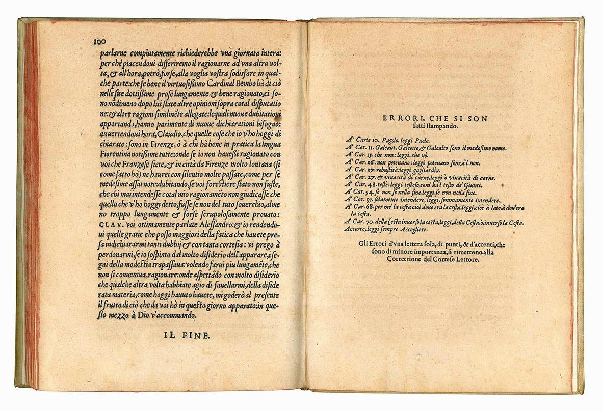 RARE FIRST EDITION (it was reprinted in 1558 and in 1560). The publisher Guillaume Rouillé (1518?-1588), who, starting with an Italian translation of De viris illustribus urbis Romae, published at the Sign of Venice in Lyons during his life over seventy book in Italian. These were addressed not only to the Italians residing in France, but also to the many Frenchmen, who had learned Italian in the course of war, study, or business. Rouillé had apprehended the book business in Venice with Giovanni and Gabriello Giolito and established himself at Lyons in 1543. His book production exceeded that of Robert Estienne, Gryphius and de Tournes, and his learning at least equalled theirs. His firm gained European reputation and his books were also sold in Antwerp, Frankfurt, Medina del Campo, Saragossa, as well as in Venice and Naples (cf. N. Zemon Davis, Publisher Guillaume Rouillé, Businessman and Humanist, in: “Editing Sixteenth Century Texts. Papers given at the Editorial Conference University of Toronto”, R.J. Schoeck, ed., Toronto, 1966, pp. 72-112; see also J. Balsamo, L'italianisme lyonnais et l'illustration de la langue française, in: “Lyon et l'illustration de la langue française à la Renaissance”, Lyon, 2003, pp. 211-229).