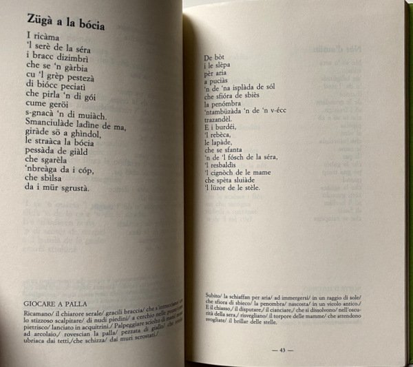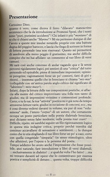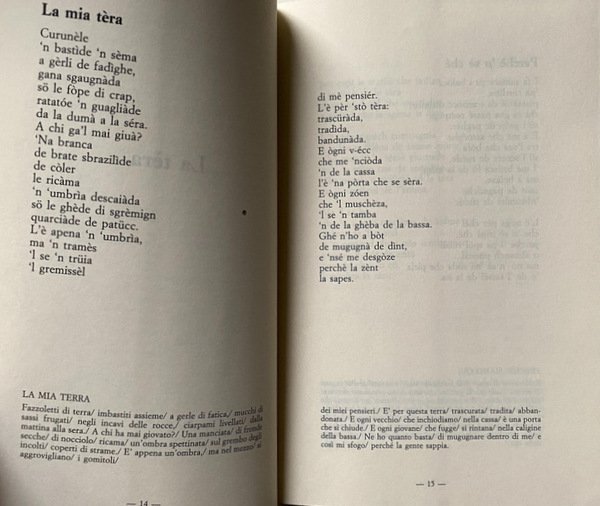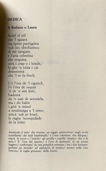Soggetti: Poesia contemporanea, Poeti italiani, Raccolte poetiche, Poesie, Brescianità, Libri Vintage Fuori catalogo, Vione, Storia, Tradizioni Popolari, Cultura locale, Poesia dialettale bresciana, Nella Berther, Cruzal, Radici culturali, Lingua, Valcamonica, Arte, Vernacolo, Mis-mas, Versi dialettali, Gaì, Gergo, Pastori, Slacadura di tacolèr, Casaro, Terra, Manèa, Donne, Amore, Folklore, Libri rari, Greco, Grecia, Ironia, Paés, Bassech, La tèra, La zènt, Ratatoe, 'L petaela, 'L picapréda, Regole fonetiche, Testo originale a fronte, Accenti, Pastore, Valle Camonica, Montagna, Bles, Strachèssa, Il giorno del pane, Contemporary poetry, Italian poets, Poetry collections, Poems, Brescianity, Books Out of print, History, Popular Traditions, Local Culture, Brescian Dialect Poetry, Cultural Roots, Language, Art, Vernacular, Dialect Verses, Jargon, Shepherds, Land, Women, Love, Rare Books, Greek, Greece, Irony, Phonetic Rules, Original Text opposite, Accents, Camonica Valley, Mountain, The Day of Bread