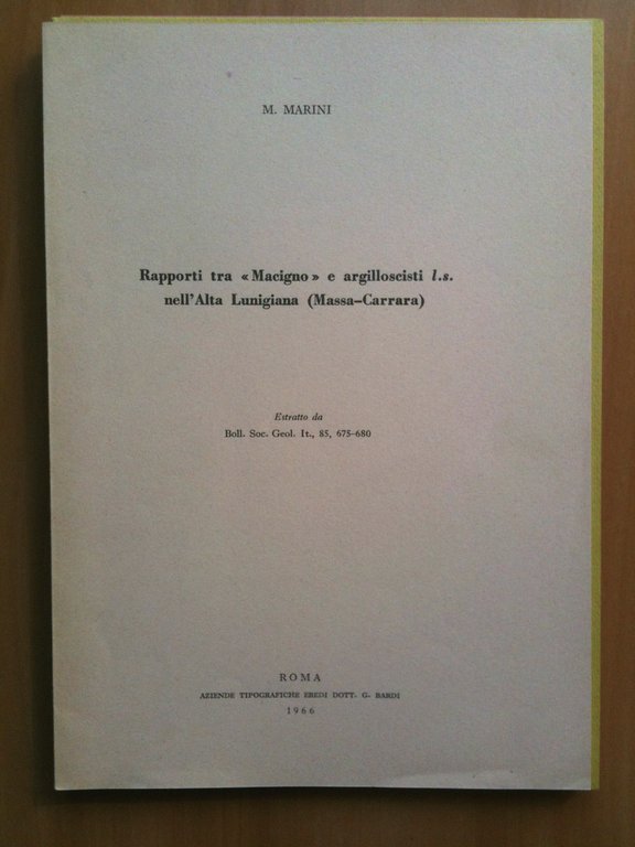 Rapporti "Macigno" argilloscisti l.s. nell'Alta Lunigiana (Massa-Carrara) 1966