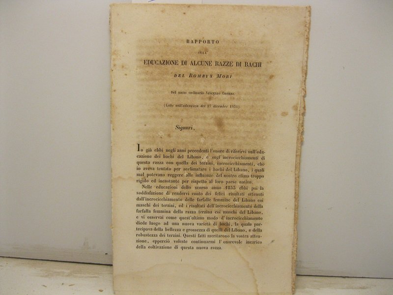 Rapporto sull'educazione di alcune razze di bachi del bombyx mori (letto nell'adunanza del 27 dicembre 1854)