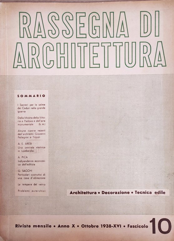 RASSEGNA DI ARCHITETTURA. RIVISTA MENSILE - ANNO X - OTTOBRE 1938-XVI - FASCICOLO 10