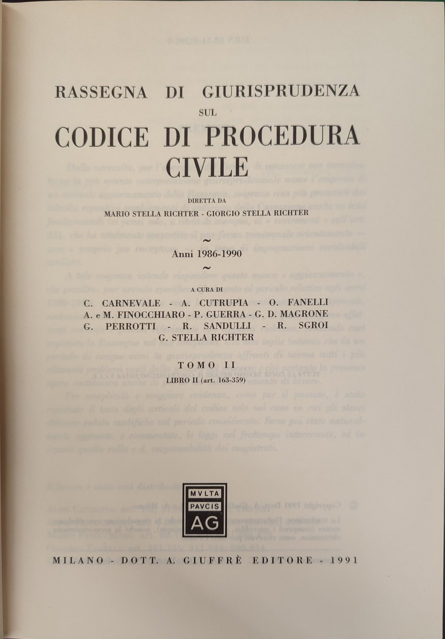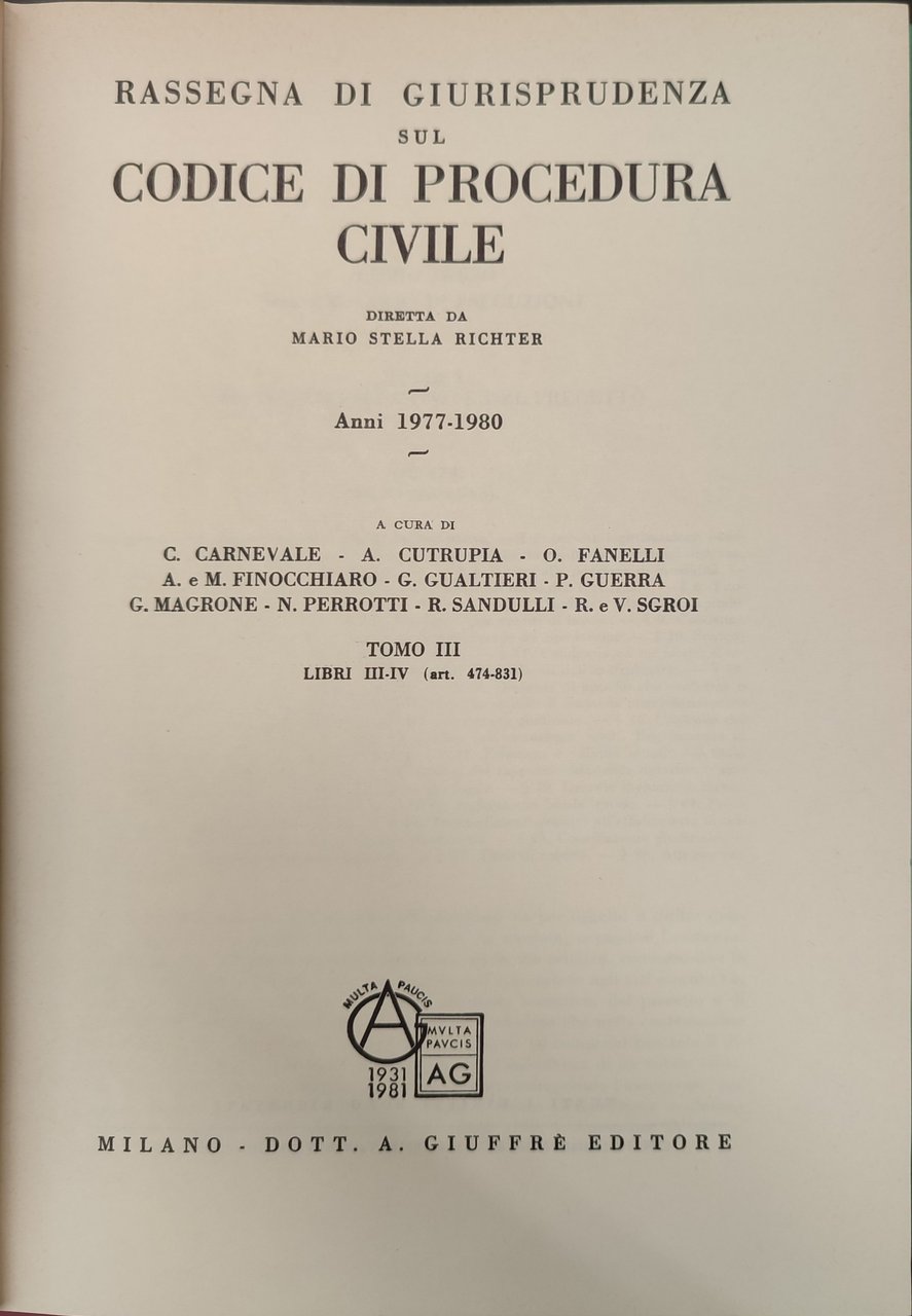 Rassegna di giurisprudenza sul codice di procedura civile. : Anni 1977 - 1980.Tomo I, Libro 1 - 162 Tomo II, Libro II art. 163 - 473 e legge sull'equo canone. Tomo III, Libri III - IV art 474 - 831