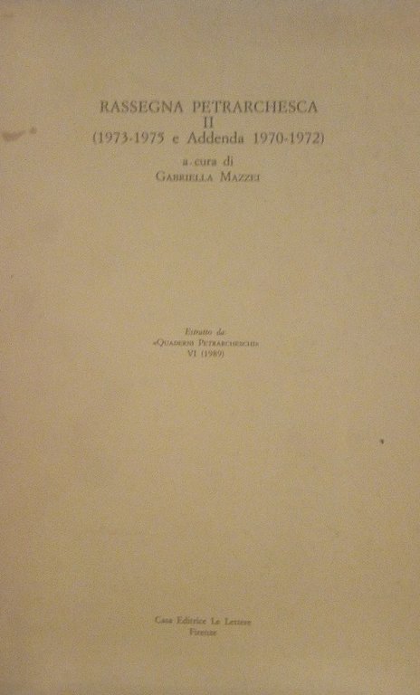 RASSEGNA PETRARCHESCA II (1973-1975 E ADDENDA 1970-1972)