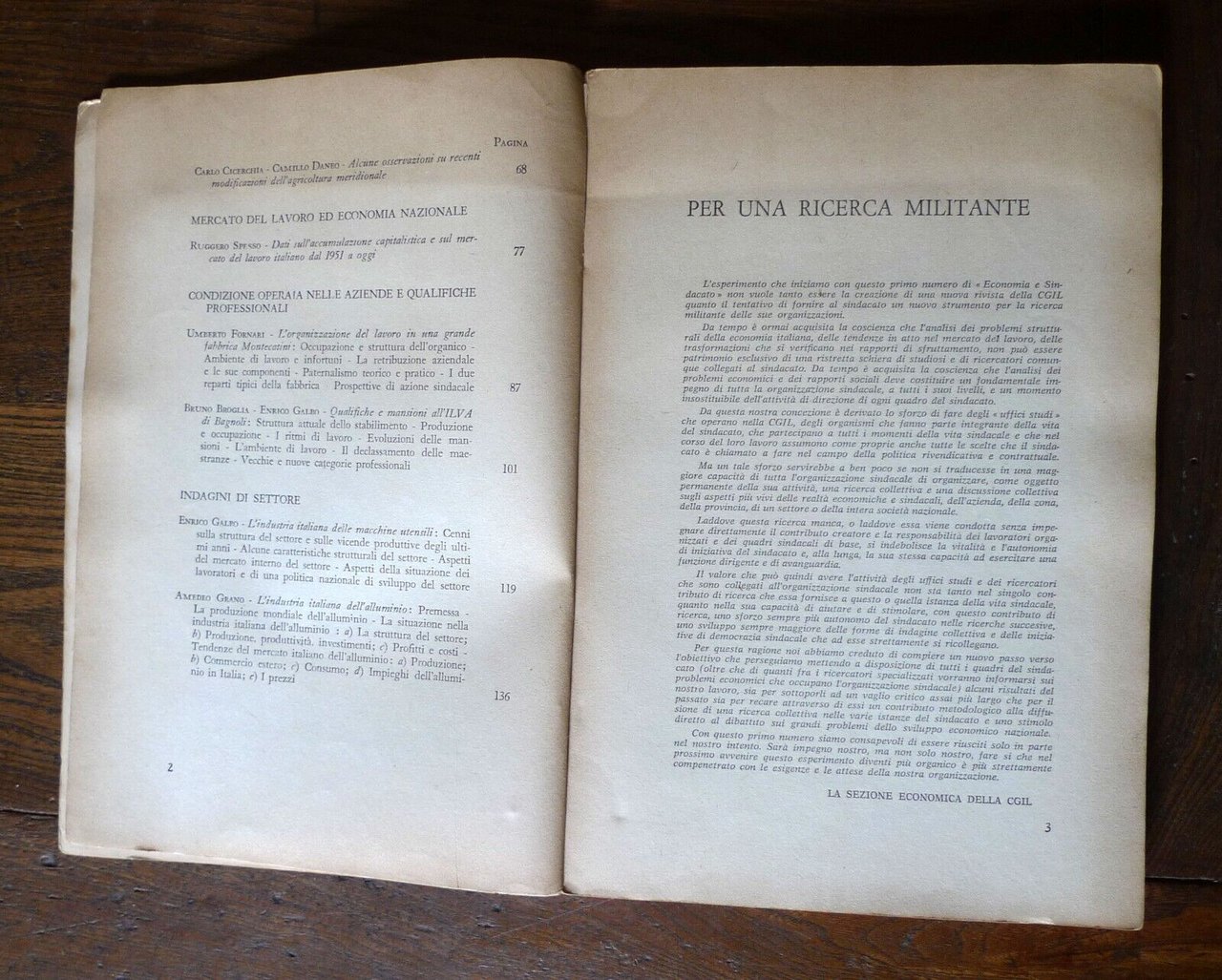 ECONOMIA E SINDACATO.A cura della Sezione Economica della CGIL.SETTEMBRE 1961.Editrice Lavoro, Roma 1961,brossura, 28x19 cm., pp.147,peso: g.350