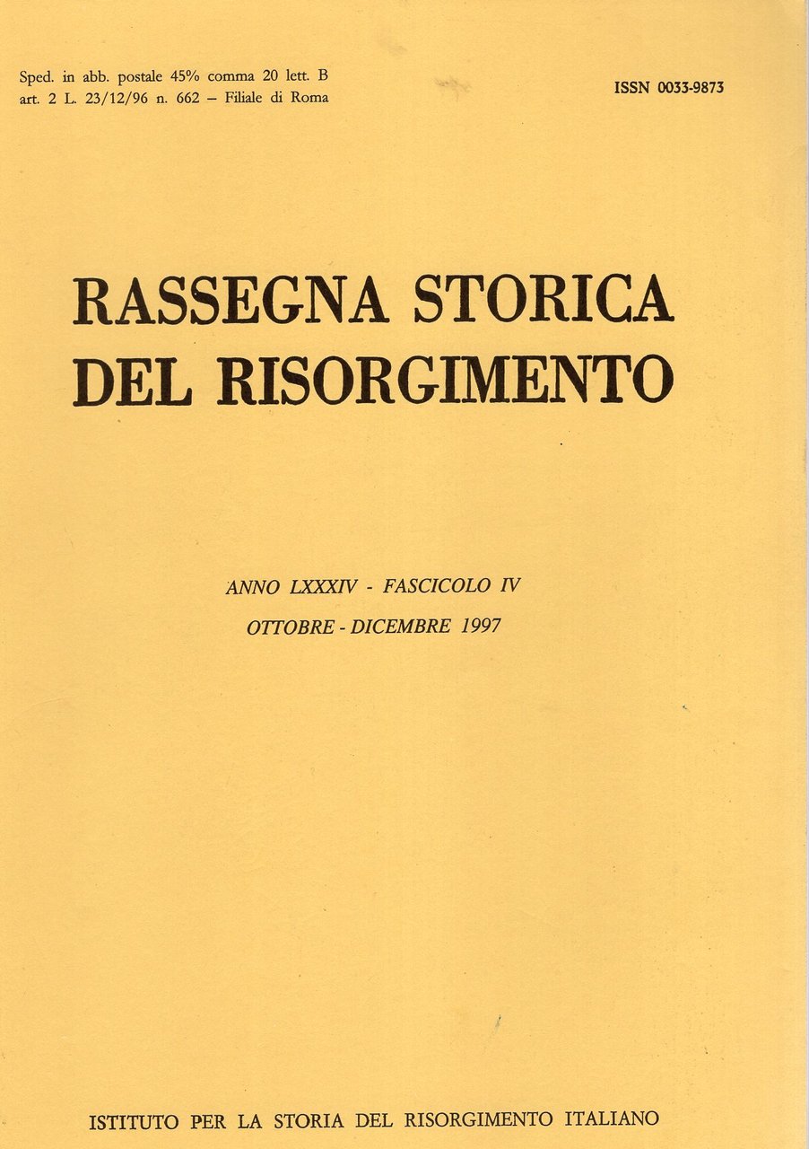 Rassegna storica del Risorgimento Anno LXXXIV - Fascicoli I-II-III-IV - Gen-Mar. /Apr. - Giu./ Lug. - sett / Ott/ Dic- annata completa 1997