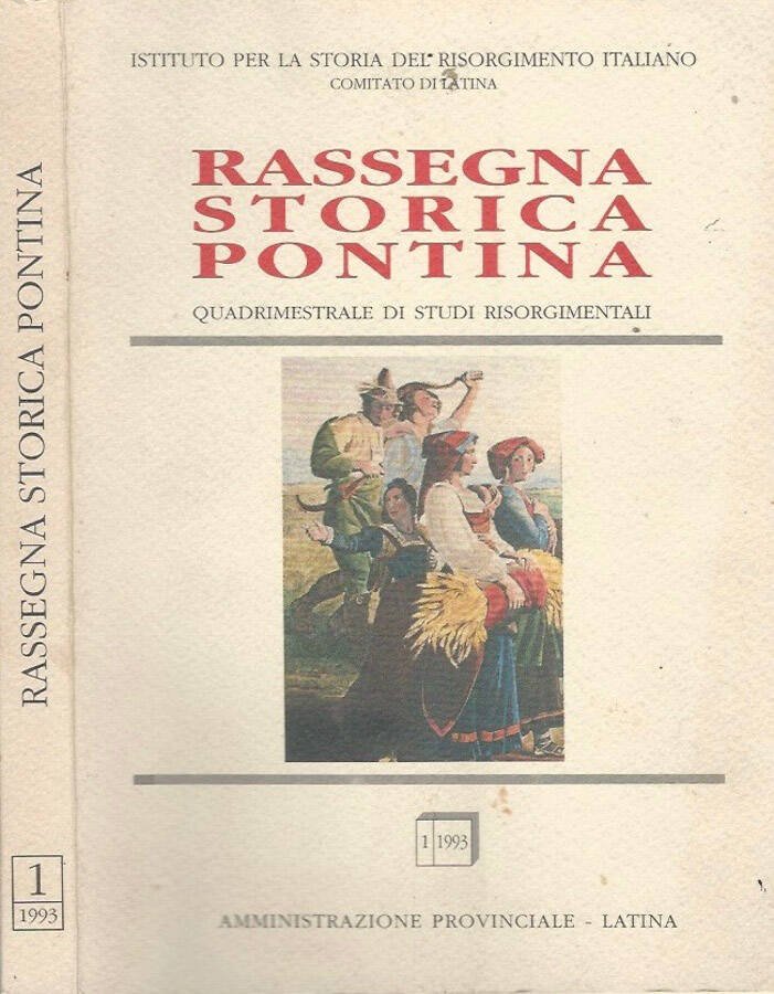 Legatura editoriale, copertina flessibile, in cartoncino, con illustrazione in cornice; segni del tempo, fioriture al piatto posteriore. Pagine in buono stato di conservazione, nessun danno in evidenza. Con materiali in nero fuori testo. Istituto per la storia del Risorgimento Italiano, Comitato di Latina, Amministrazione Provinciale Latina. Numero pagine 228.