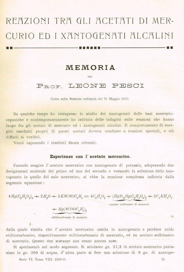 Reazioni tra gli acetati di mercurio ed i Xantogenati alcalini. Sulla costituzione della mercuriofenilamina