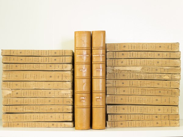 Quatrième édition, revue et complétée au moyen de Notes additionnelles et d'un Supplément laissés par l'Auteur, 21 vol. in-8 br. et 2 vol. in-4 reliure moderne demi-basane à coins blonde, dos à 5 nerfs, Edmond d'Ocagne, J.B. Baillière, Crochard, Levrault, Roret, 1834 - 1836, ; T. I 1e P. : 16 pp. (Prospectus) et 256 pp. ; T. I 2e P. : pp. 257-587 ; T. II 1e P. : 2 ff. , 240 pp. ; T. II 2e P. : pp. 241-500 ; T. III 1e P. : 271 pp. ; T. III 2e P. : pp. 273-435 ; T. IV 1e P : 2 ff. , iv-368 pp. ; T. IV 2e P. : pp. 369-691 ; T. V. 1e P. : 3 ff., 240 pp. ; T. V. 2e P. : pp. 261-464 ; T. V. 3e P. : pp. 465-687 et 1 f. d'errata ; T. VI : 452 pp. ; T. VII 1e P. : 256 pp. ; T. VII 2e P. : pp. 257-533 ; T. VIII 1e P. : 2 ff., 272 pp. ; T. VIII Complément 1e P. : pp. 255-463 et 2 ff. ; T. VIII 2e P. : 332 pp. : T. IX 1e P. : : 240 pp. ; T. IX 2e P. : pp. 241-501 et 1 f. d'errata ; T. X 1e P. : 256 pp. ; T. X 2e P. : pp. 257-497 ; Atlas Tome I : 2 ff., 88 pp. (explication des planches, manquent les explications des pl. 155 - partiellement - à 161) , 161 planches numérotées ; Atlas Tome II : 106 pp. (explication des planches), 1 f. n.ch., 100 planches numérotées de 162 à 260, avec 219 bis, et 18 planches numérotées de A à S (pas de planche I) Rare exemplaire réunissant les 21 volumes brochés toujours sous leurs couvertures d'origine (le tome 1 intègre le prospectus d'origine), et les 2 tomes de l'atlas en reliure moderne. Très intéressant exemplaire bien complet des 279 planches (les 261 planches numérotées dont la 219 bis, et les 18 planches complémentaires numérotées de A à S, dont la grande carte aquarellée des environs de Paris, et la carte colorie), mais auquel manquent quelques feuillets d'explication des planches (de la fin de l'explication de la planche 155 à l'explication de la planche 161) et le portrait de Cuvier (qui à l'époque de la livraison fut livré à part). Quelques accrocs, qq. mouill. et deux plats débrochés aux volumes de texte, anc. mouill. pour l'Atlas. Nissen, ZBI, 1011