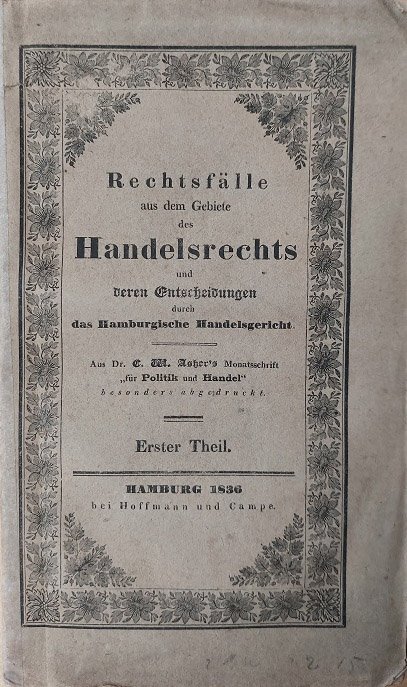Rechtsfälle aus dem Gebiete des Handelsrechts und deren Entscheidungen durch das Hamburgische Handelsgericht. Erster Theil.