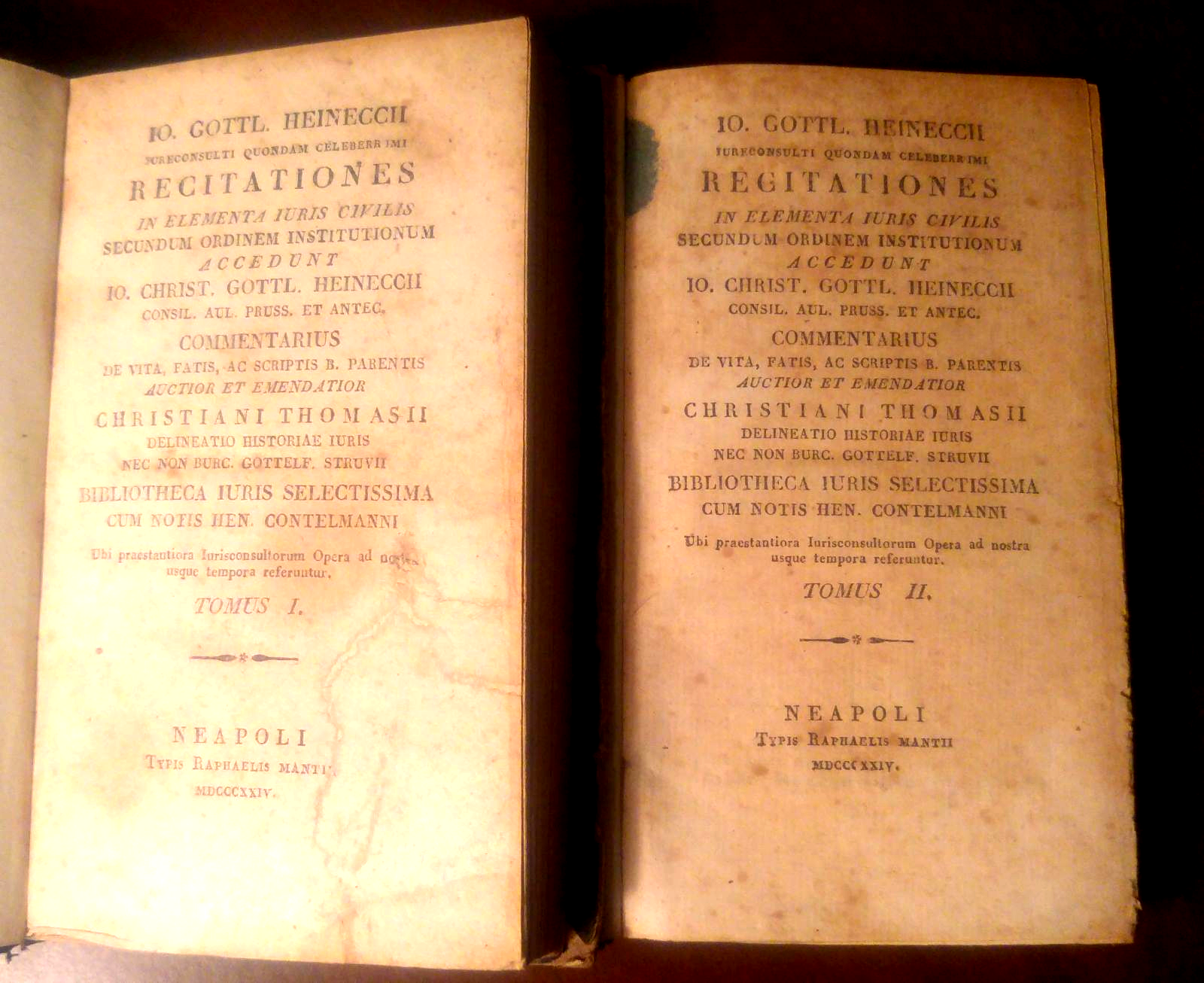 Recitationes In Elementa Iuris Civilis 1824 di Gottlieb Heineccii 2 volumi libro