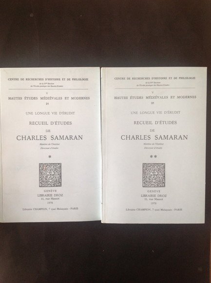 RECUEIL D'ETUDES - VOL. I, II UNE LONGUE VIE D'ERUDIT