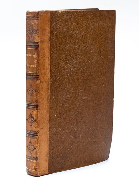 1 vol. in-8 reliure de l'époque demi-veau caramel, [ Recueil de Spécimens et brochures ] La Touraine ancienne et moderne, par Stanislas Bellanger [ Spécimen ], L. Mercier, Editeur de La Vierge, Paris, 1845 [ Suivi de : ] La Chute de Napoléon. Poème, par J. P. Collot, Typographie Lacrampe et Cie, 1846, portrait en frontispice, 178 pp. et 1 f. n. ch. (mention de "Seconde édition revue et corrigée" au titre premier) ; [ Suivi de : ] Anatomie et Physiologie de l'Homme, article de Max. Parchappe, in "Instruction pour le Peuple Cent Traités, Dubochet, Lechevalier et Cie, Paris, s.d., pp. 737-768 [ Suivi de : ] Précis du Procès Emile de La Roncière et Marie de Morell, Imprimerie de Prevot, Saint-Denis, s.d., 20 pp. et une grande planche dépliante [ Suivi de : ] Fondation d'une Colonie Agricole de Jeunes Détenus à Mettray (Département d'Indre-et-Loire), Société Paternelle, Librairie de B. Duprat, Paris, 1839, 112 pp., pp. 129-134, 6 pp., avec deux planches lithographiées dont une dépliante L'exemplaire de la "Fondation d'une Colonie Agricole de Jeunes Détenus à Mettray" est remarquable en plusieurs points. Il se distingue des versions habituellement rencontrées en ce que la page de titre indique "Librairie de B. Duprat" et ne porte pas au-dessous la mention "Libraire de la Société Asiatique de Londres" ; surtout, le contenu des appendices est différent des versions habituelles. On y observe un saut dans la pagination (on passe de la page 112 à la page 129) sans observer de manque dans les chapitres, dont le contenu diffère néanmoins partiellement (par exemple l'appendice III est noté ici II, le IV est noté III, le II est noté V) ; la liste des membres est complète (et non pas limitée au Conseil d'Administration), et elle est ici en pagination séparée, et l'on trouve in-fine 2 planches lithographiées dont une belle vue dépliante en perspective cavalière (à la place du plan habituel). Deux noms sont rajoutés à la plume dans la liste des "Membres fondateurs inscrits jusq'au 10 juin 1839" : Mme Elisabeth Fry et Jules Taschereau, député (deux autres annotations modifient la qualité de 2 membres : Vatry, pair de France, devient député, le Vicomte de Forestier n'est plus pair de France. La majorité de ces éléments font penser qu'il s'agit ici d'une version antérieure à la version habituelle de l'édition originale (peut-être une épreuve non corrigée). Gustave de Beaumont et Alexis de Tocqueville furent des soutiens dans la fondation de cette colonie agricole, le premier appendice est constitué par une lettre de Tocqueville à Demezt. Bon état (dos un peu frotté en mors, ex libris Bibliotheca Rod. Aug. d'Ornano).