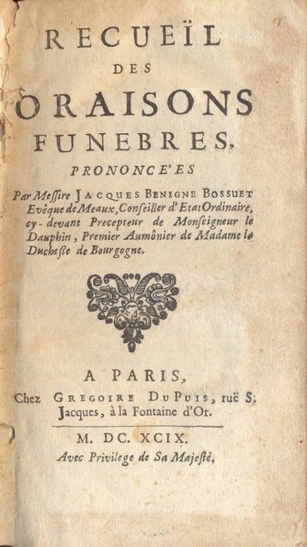 Recueil des Oraisons Funebres.