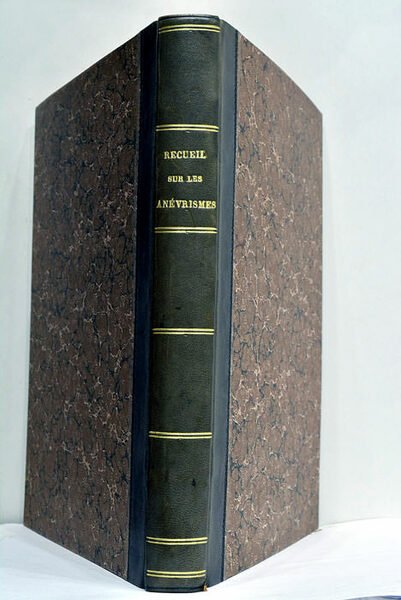 Ensemble 8 mémoires en 1 volume. 22 pages. + 40 pages. + 26 pages. + 62 pages. + 3 feuillets. + 27 pages. + 45 pages. + 1 feuillet blanc. + 31 pages. (25x18,5 Cm). Demi basane moderne genre ancien. Dos lisse doré. Intéressant recueil de dissertations parues entre 1798 et 1828 sur les Anévrismes. Ces textes, qui offrent de nombreuses descriptions de cas observés, et exposent les méthodes médicales ou chirurgicales utilisées à l'époque, constituent un important témoignage de l'état des connaissances sur cet aspect de la pathologie des Artères et de la Circulation du Sang.