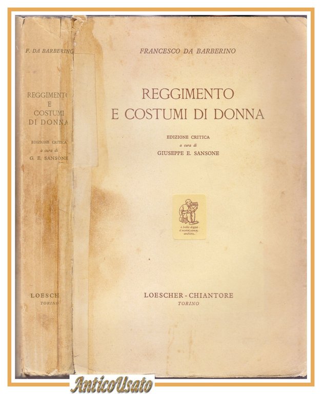 REGGIMENTO E COSTUMI DI DONNA Francesco da Barberino 1957 Loescher libro Sansone