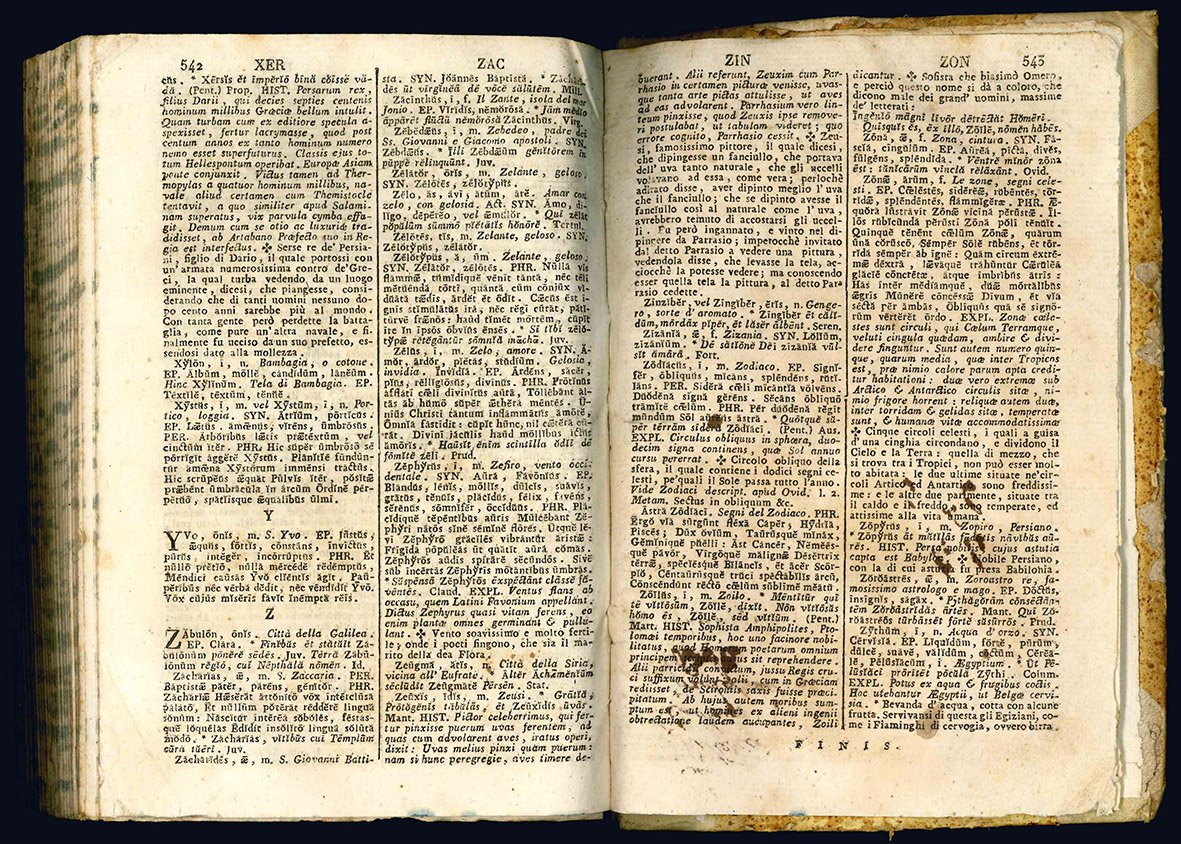 In-8vo (mm 185x125); pp. 543, [1]. Segnatura: A-Ll8. Il fascicolo D (pp. 49-64) è posto erroneamente dopo il fascicolo F. Piccolo fregio al frontespizio, testo su due colonne. Lievi aloni e leggere fioriture ad alcune carte. Lieve mancanza al margine superiore del frontespizio, che tuttavia non comporta la perdita di testo.