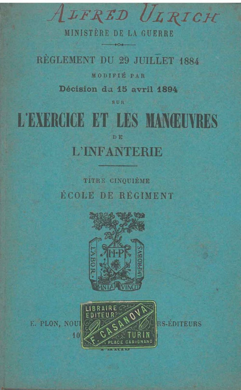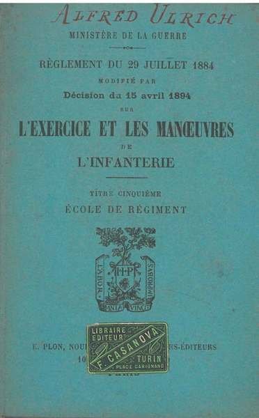 Réglement du 29 juillet 1884 modifié par décision du 3 janvier 1889 sur l'exercice & les manoeuvres de l'infanterie. Titre cinquième: Ecole de régiment