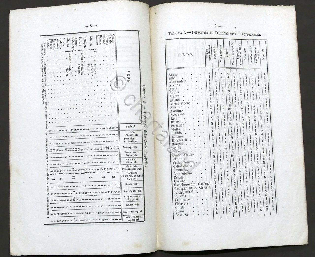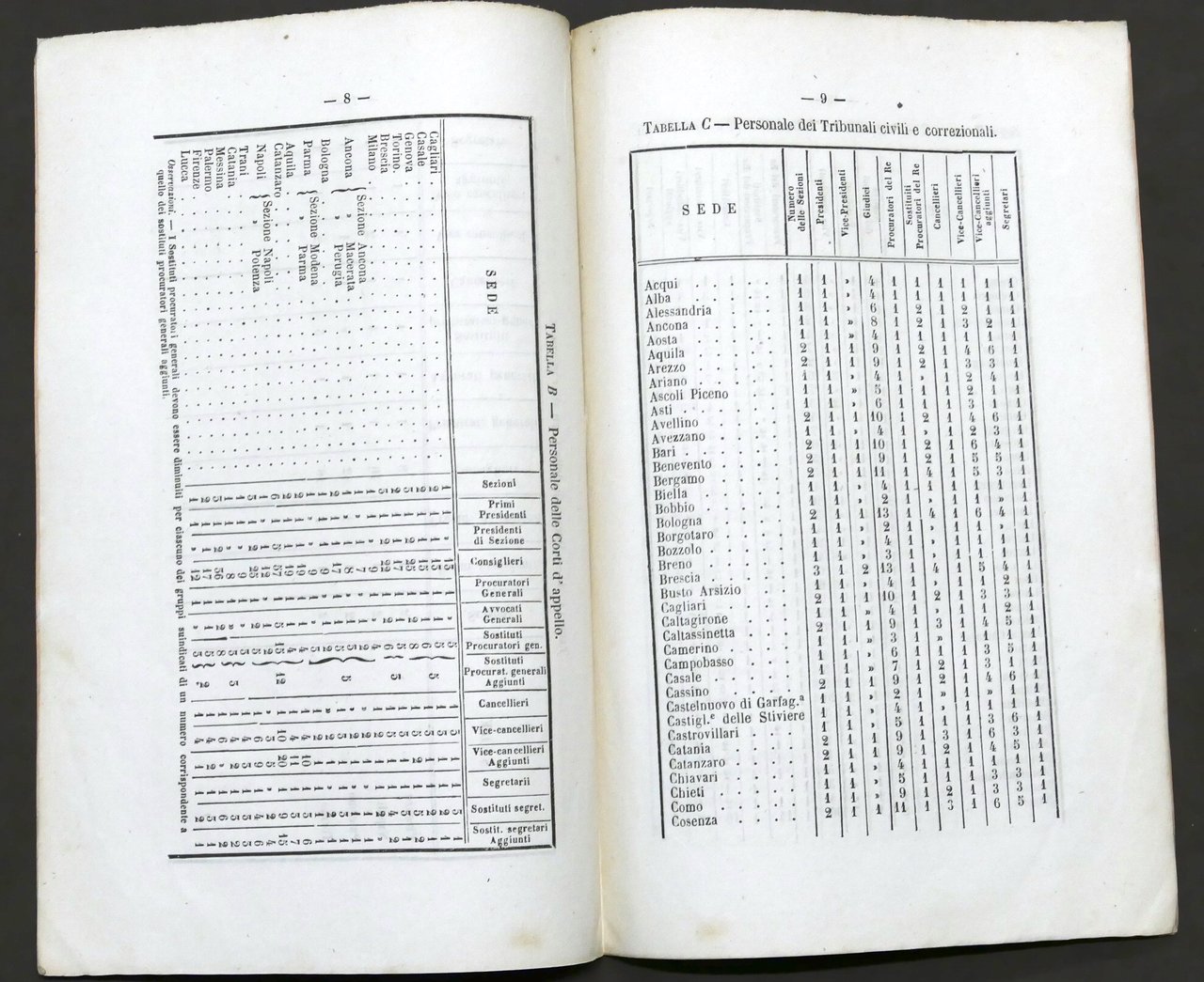 Regno d'Italia - Pianta del Personale Giudiziario - 1865