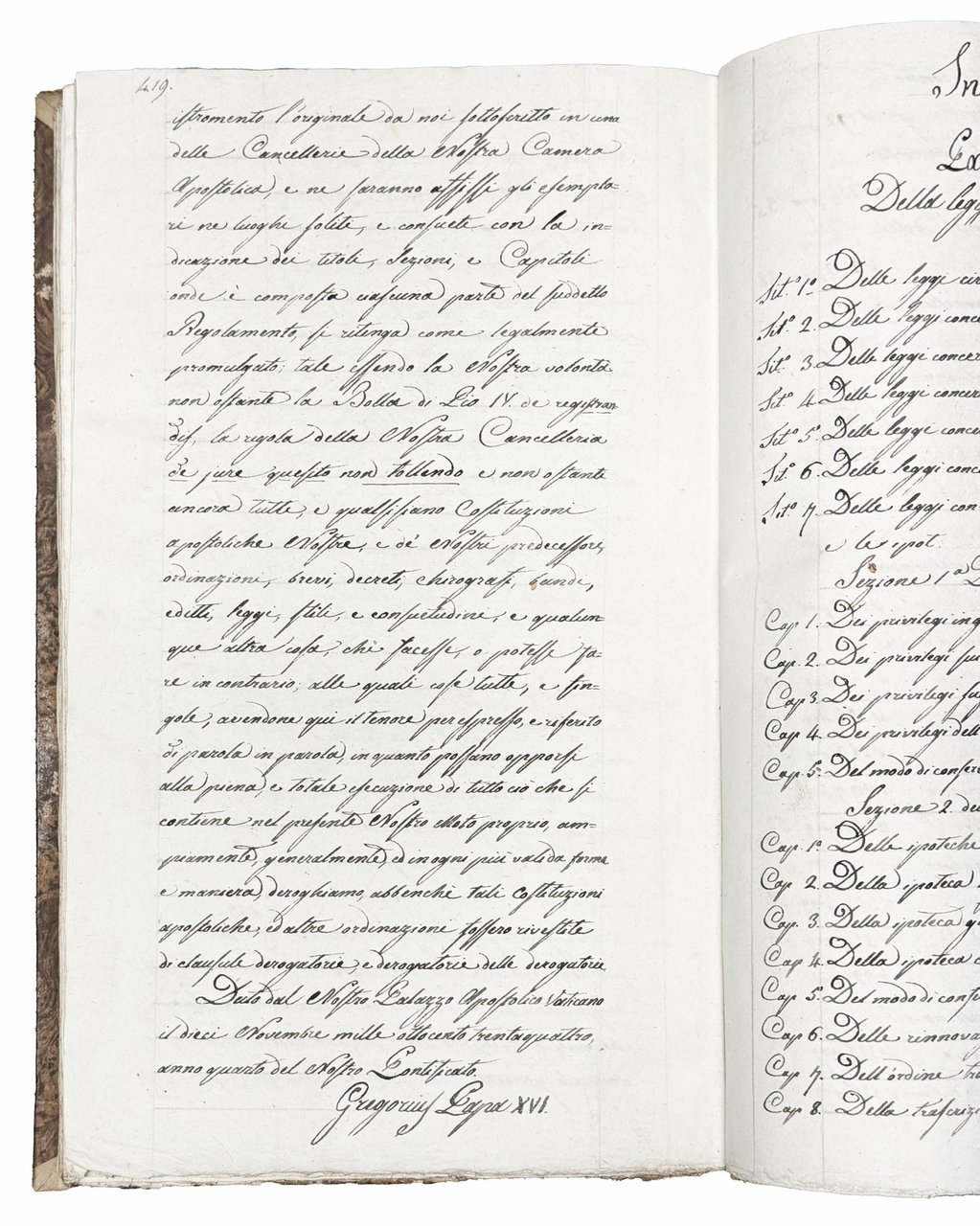 Regolamento Legislativo e Giudiziario per gli Affari Civili. Manoscritto su carta in italiano. Italia, ca. 1835 | Libri antichi e moderni | GREGORIO XVI (B.A. Cappellari, Belluno, 1765-Roma, 1846; papa