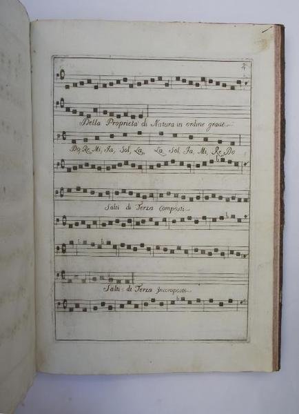 Cm. 31, pp. (8) 59 (1) (2) + 25 tavole fuori testo di musica e testo incisi. Una testata e capolettera decorati. Legatura del tempo in mezza pelle con titoli in oro al dorso. Qualche segno d'uso alla legatura, peraltro esemplare genuino, marginoso e ben conservato. Opera molto rara e sconosciuta a molta bibliografia.
