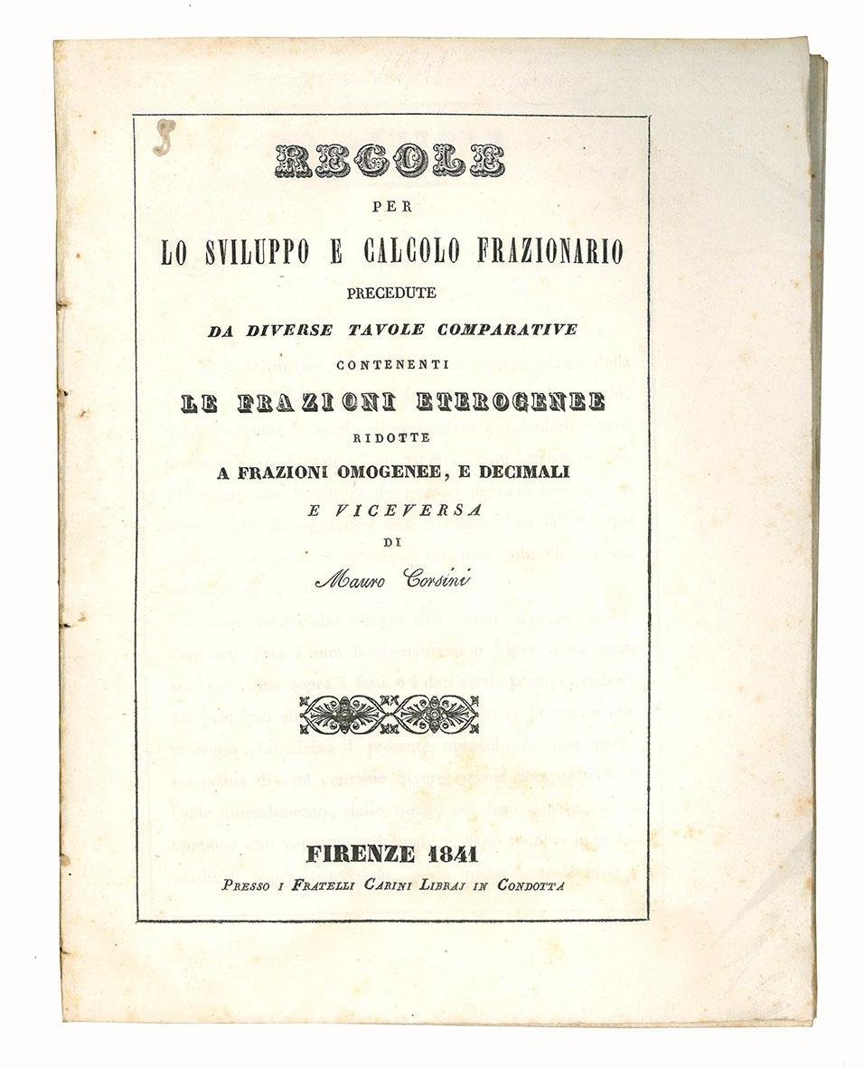 Regole per lo sviluppo e calcolo frazionario precedute da diverse tavole comparative contenenti le frazioni eterogenee ridotte a frazioni omogenee, e decimali e viceversa.